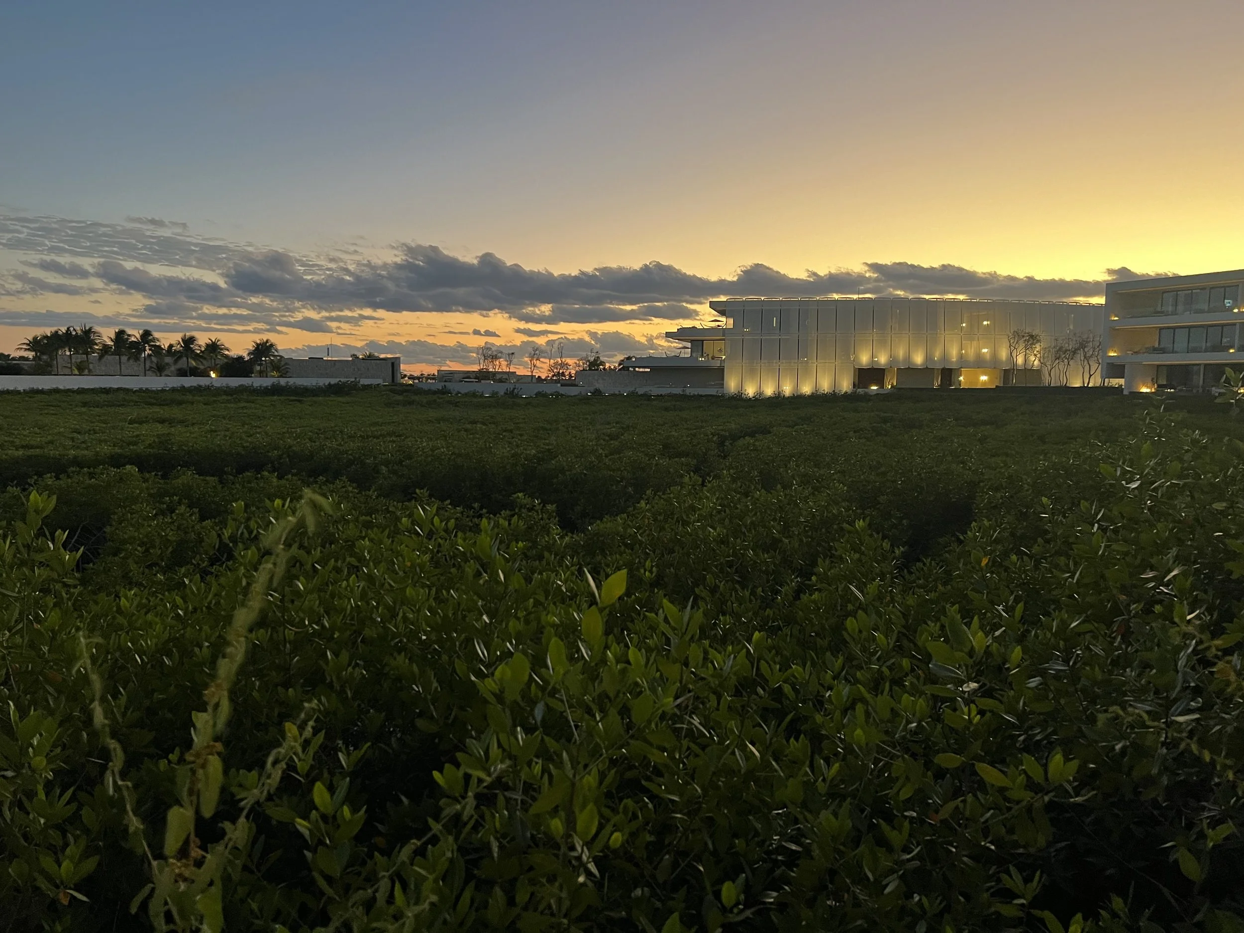 Maroma was developed in the 1970s before stricter coastal regulations, allowing buildings to sit unusually close to the shoreline. Newer resorts like St. Regis and Etéreo must be set back behind mangroves.